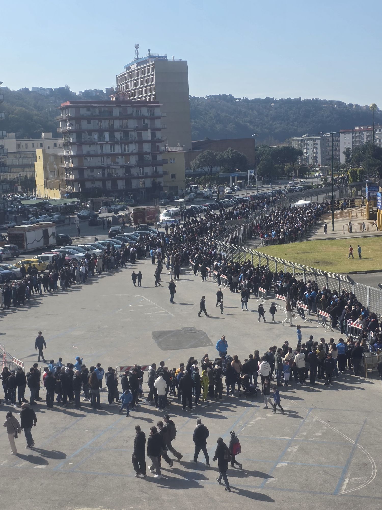 Sotto la luce del sole, l’area intorno allo stadio è il manifesto della “Napoli internazionale”. È una festa gioiosa e culturale: scolaresche in visita, turisti con lo smartphone puntato verso i murales e famiglie che passeggiano in un’atmosfera di vibrante entusiasmo. Qui si vede la mano dell’amministrazione comunale, impegnata a cavalcare l’hype di un brand — quello del Napoli e della città — che non è mai stato così forte. È la vetrina scintillante della rinascita, un polo d’attrazione ordinato che trasuda orgoglio e appartenenza.